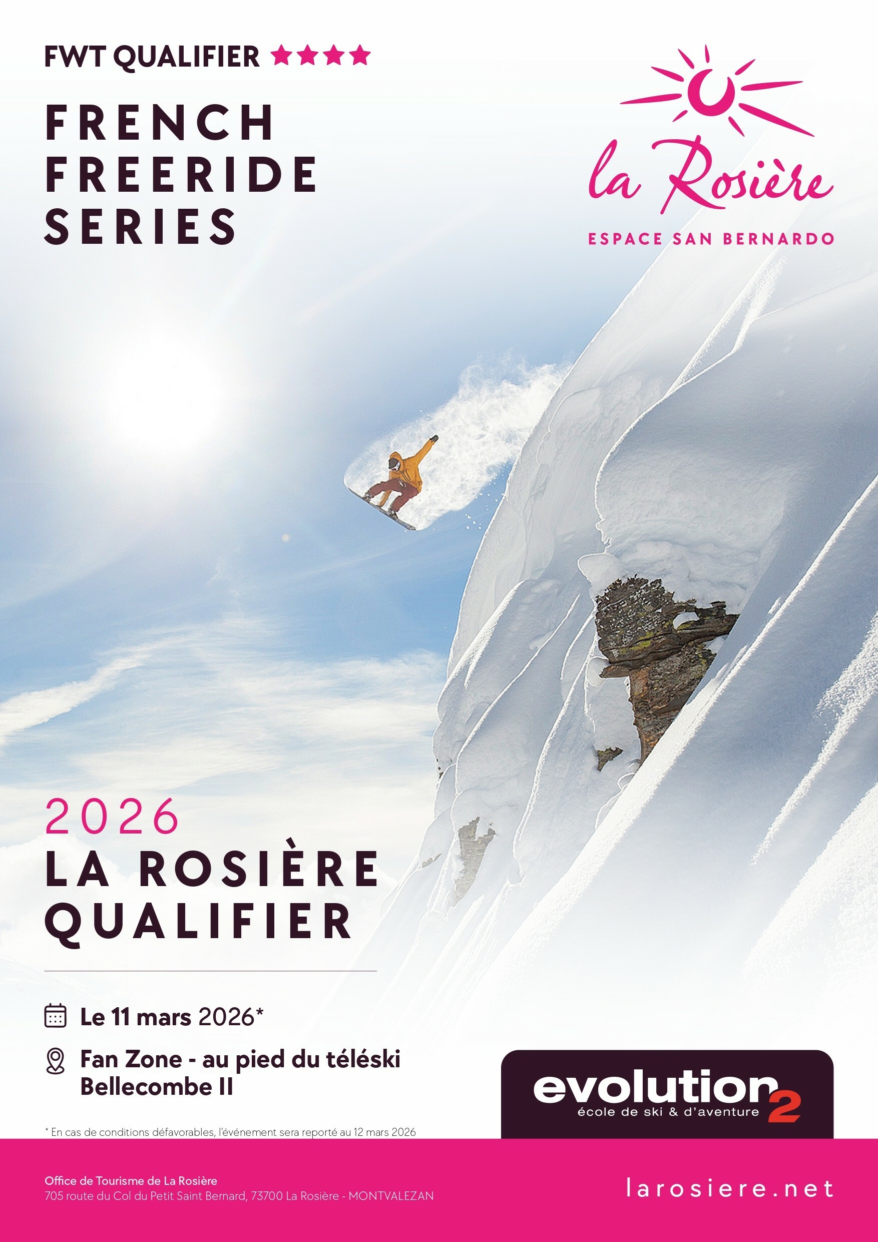 Le spectacle s’annonce grandiose sur la Face nord du Fort du Mont Valaisan, où des freeriders internationaux viendront s’affronter sur des lignes engagées et techniques. Profitez du spectacle en rejoignant la Zone spectateurs au pied du téléski Bellecombe 2. Rendez-vous à partir de 10h15 ⏲.