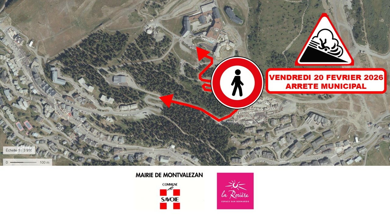 👉 Par mesure de précaution, Monsieur le Maire de Montvalezan – La Rosière a pris, avec effet immédiat, un arrêté interdisant cette route aux piétons.