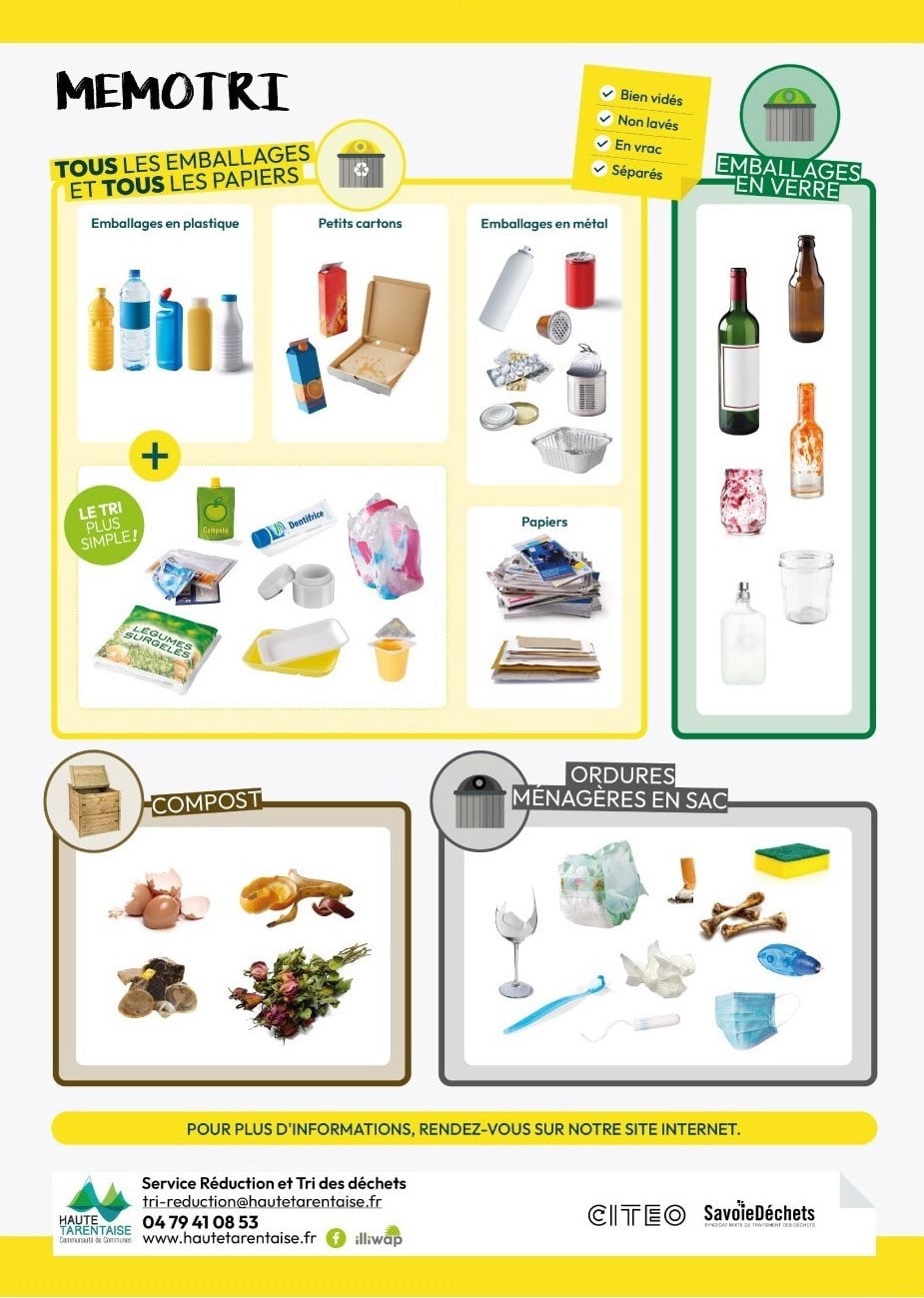 le tri des déchets pour les habitants des 8 communes de Haute Tarentaise sera simplifié : Vous pourrez désormais déposer au même endroit tous les emballages et tous les papiers. Les pots de yaourt, de crème, barquettes, tubes de dentifrice, les films plastiques, emballages de charcuterie, sachets chips, blister… vont désormais dans le bac jaune.
