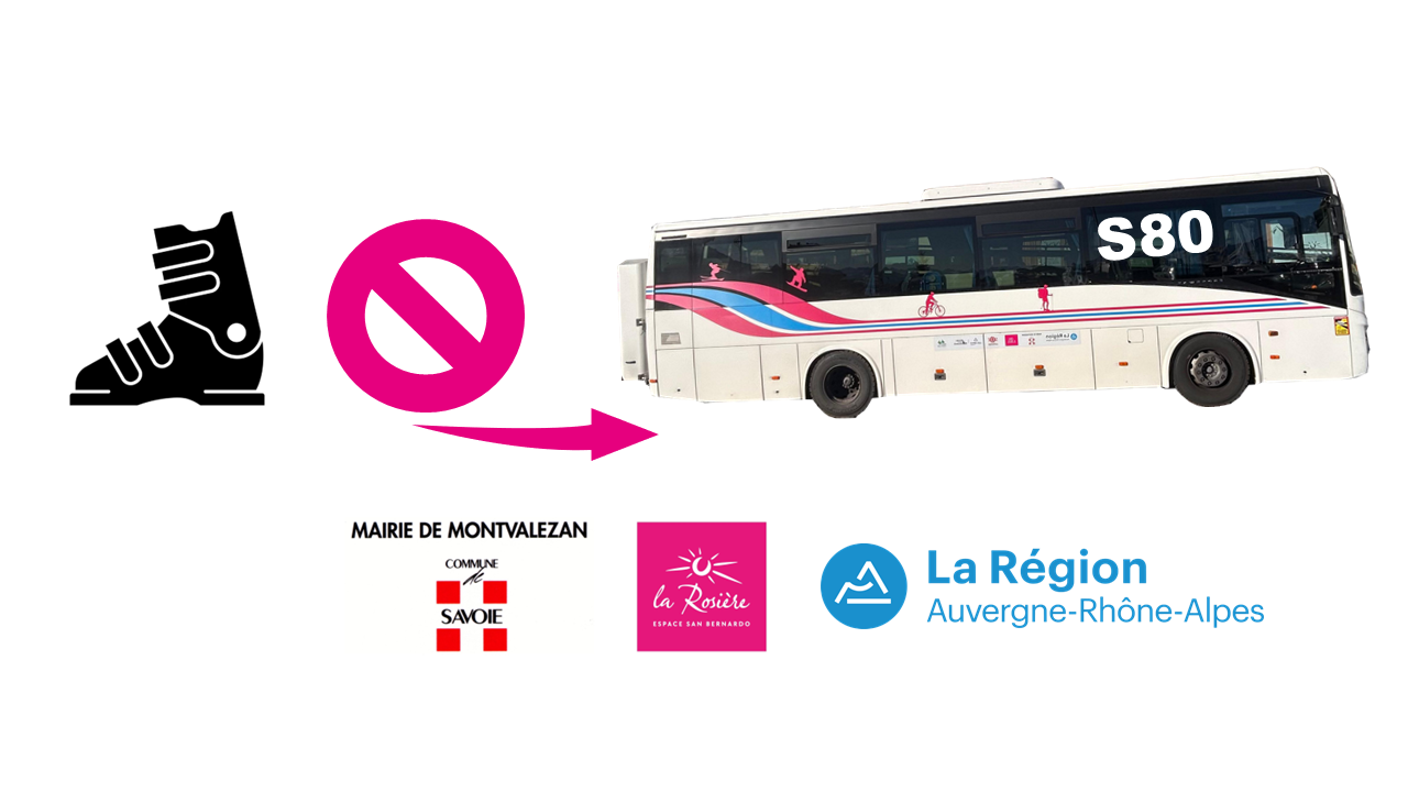 Pour des raisons de sécurité, il est strictement interdit de voyager avec des chaussures de ski aux pieds dans la navette S80 🚫
