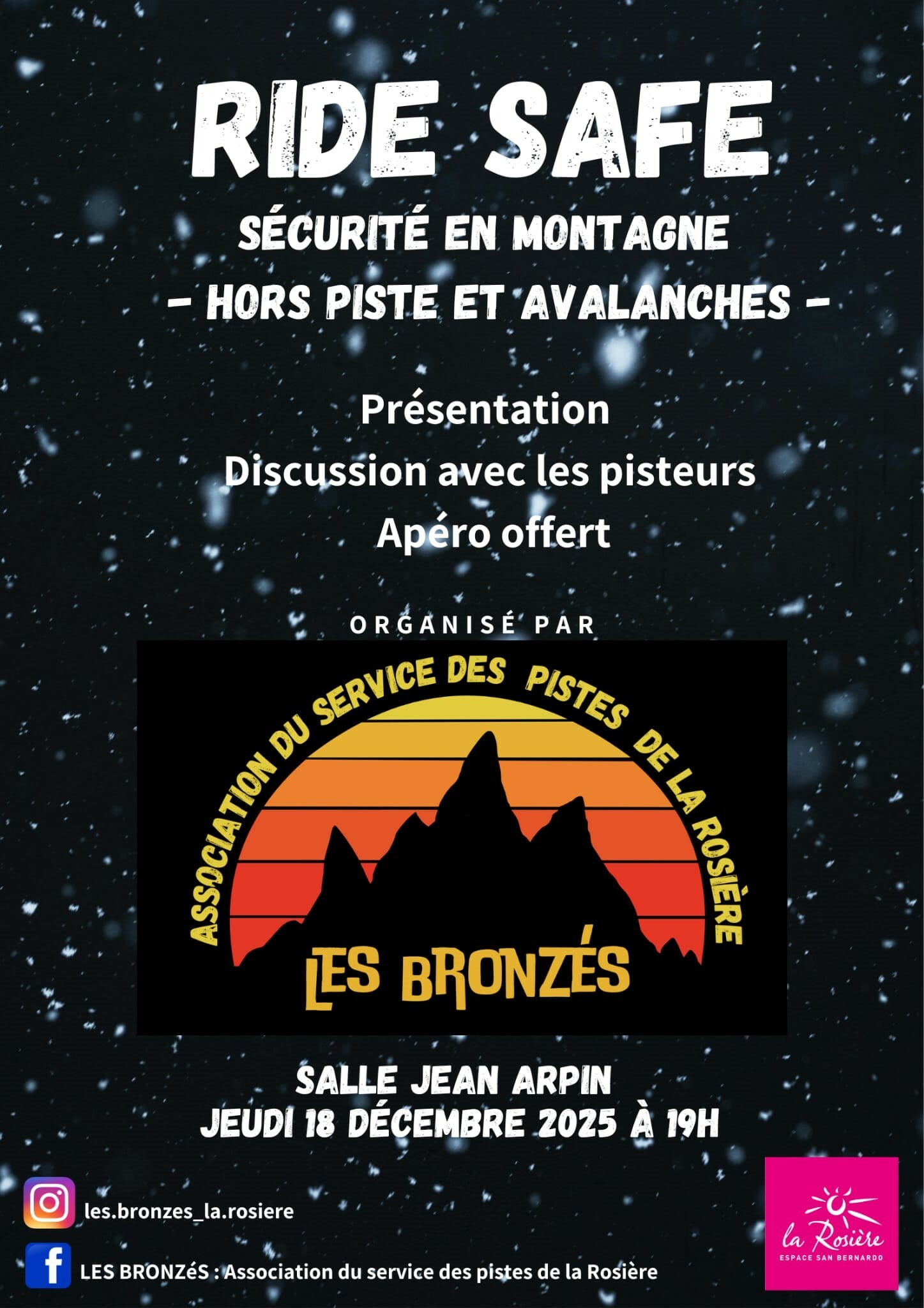L’association du services des pistes de La Rosière « Les Bronzés » vous invite à une soirée ouverte à toutes et tous, afin de mieux comprendre les risques liés à la montagne en hiver ❄🏔