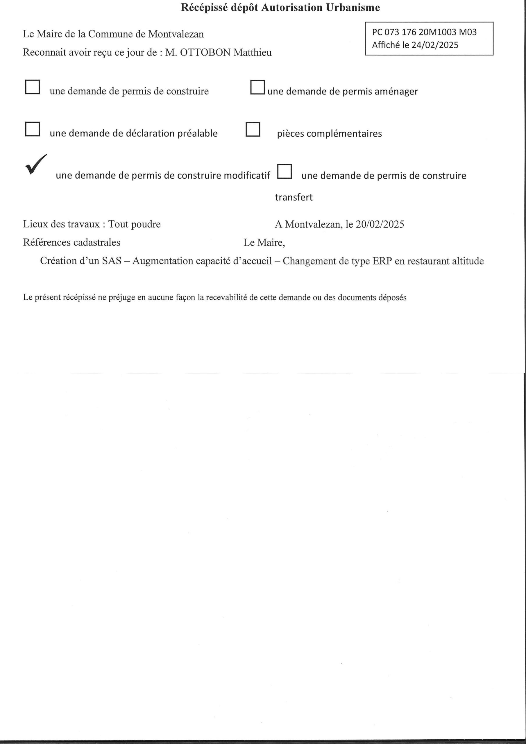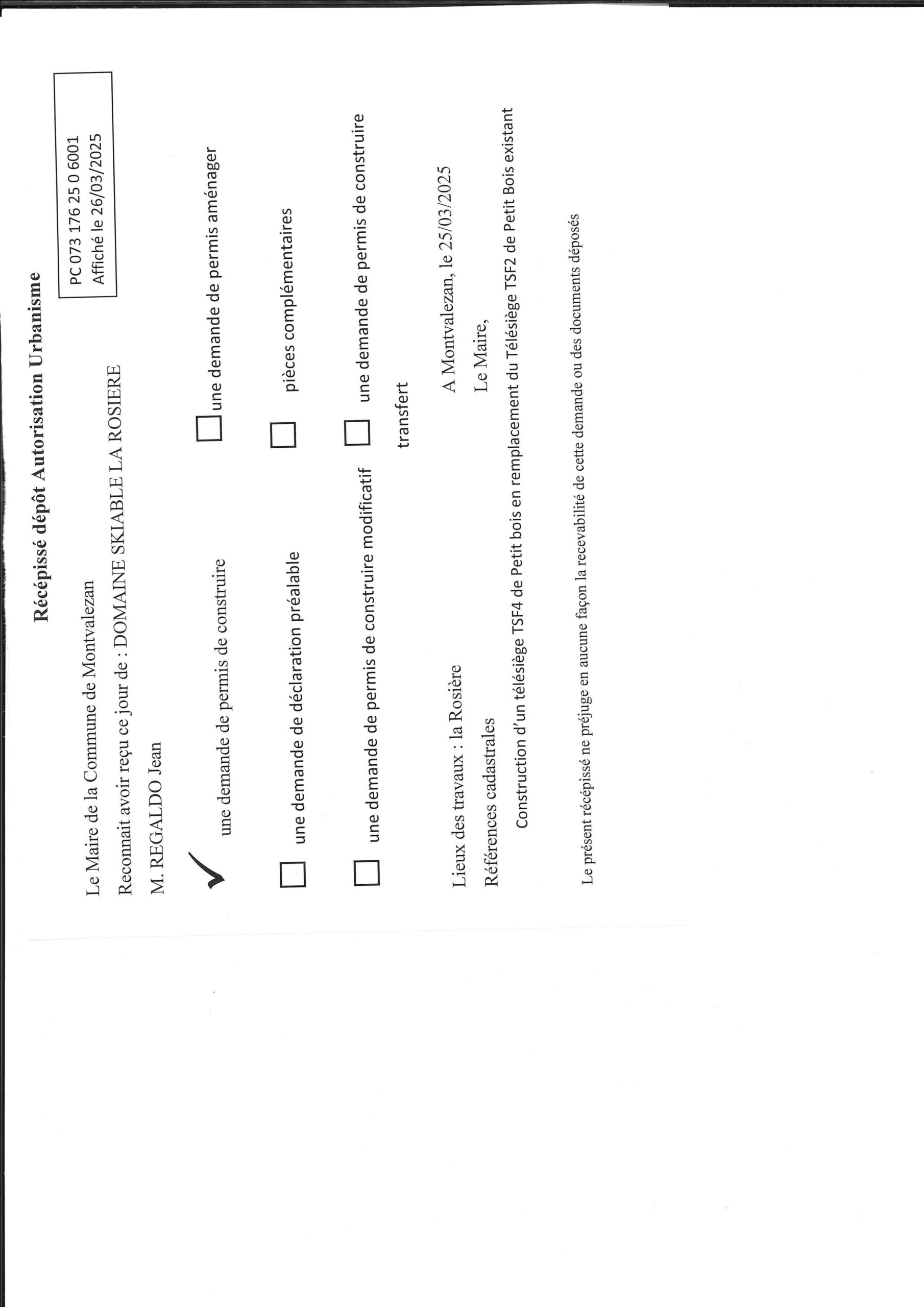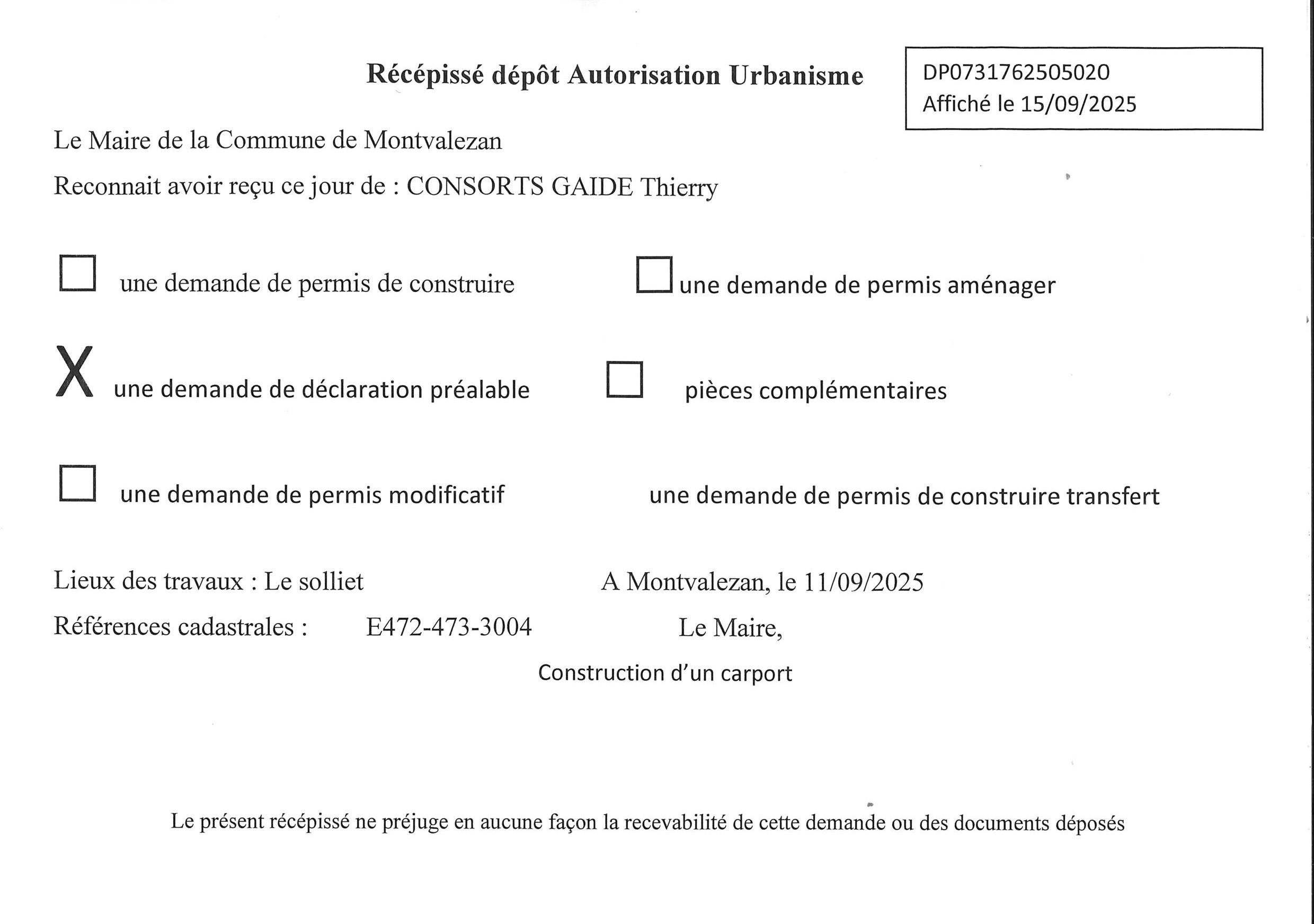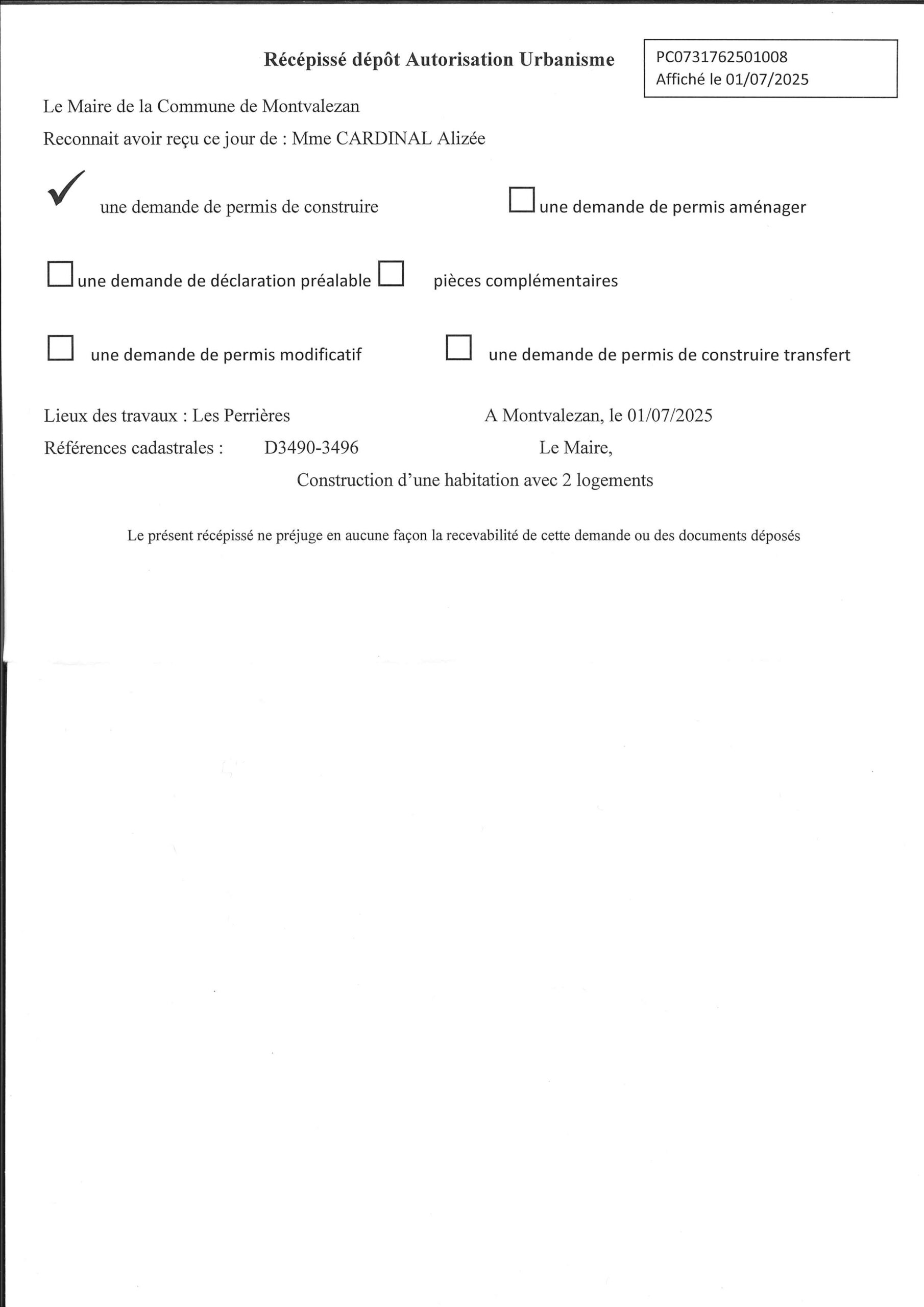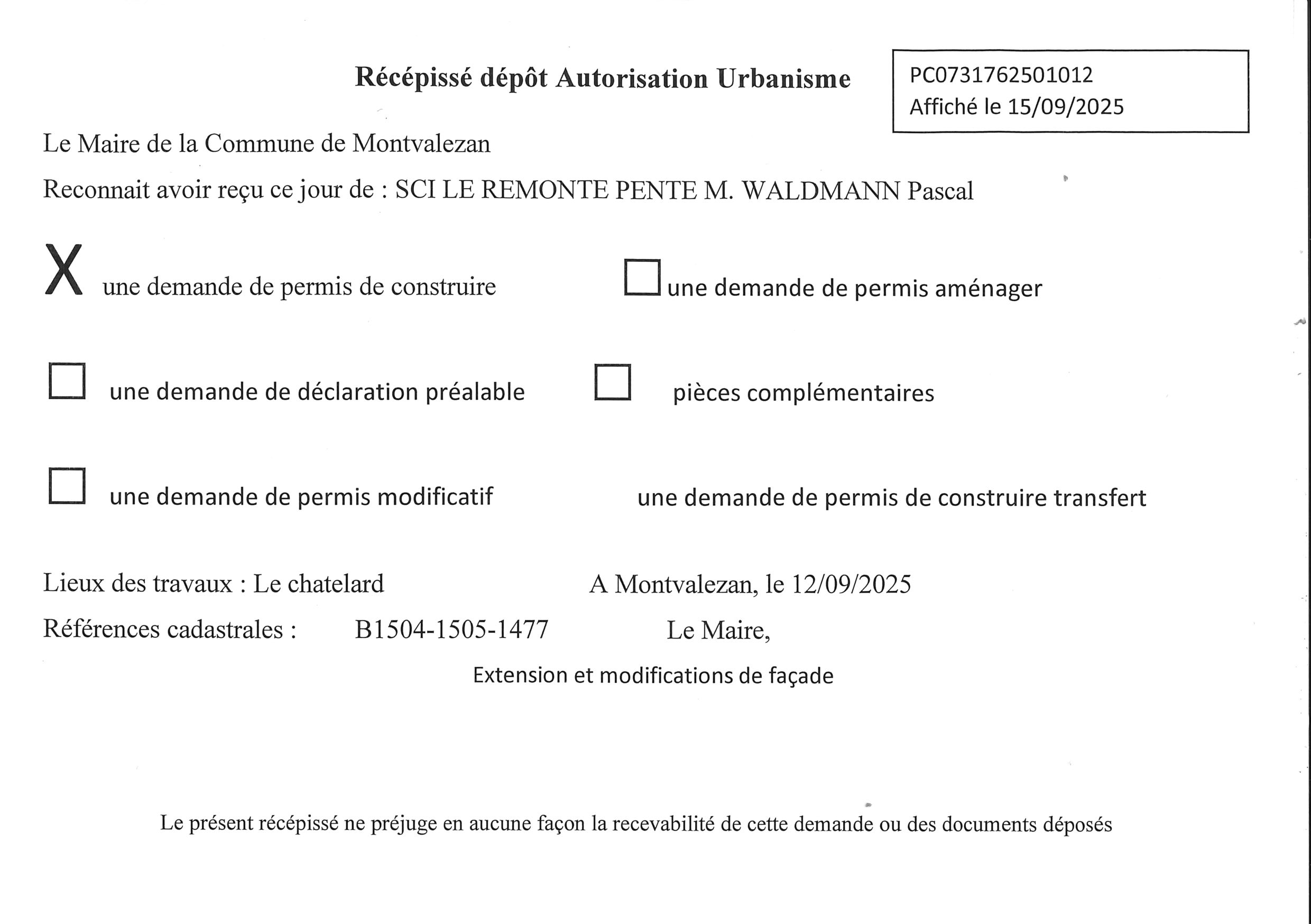 • les récépissés de dépôt des autorisations d’urbanisme (ADS) ;