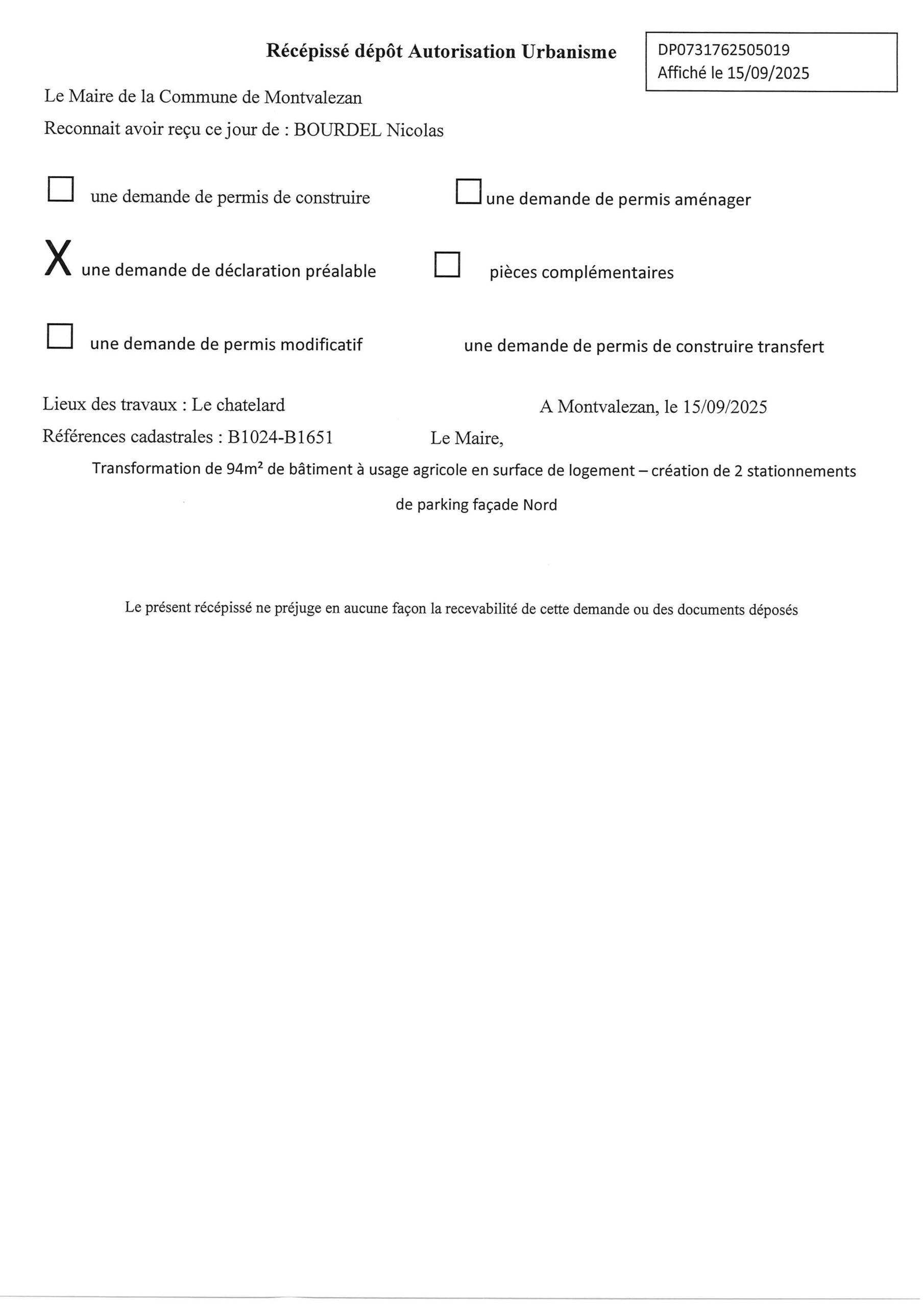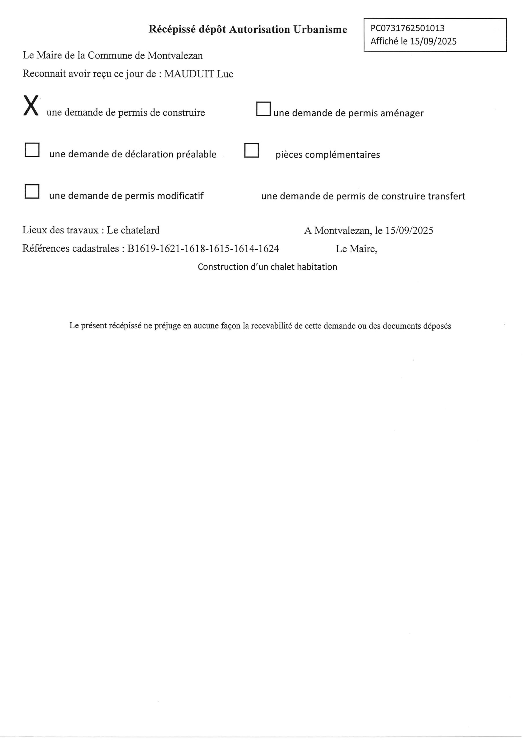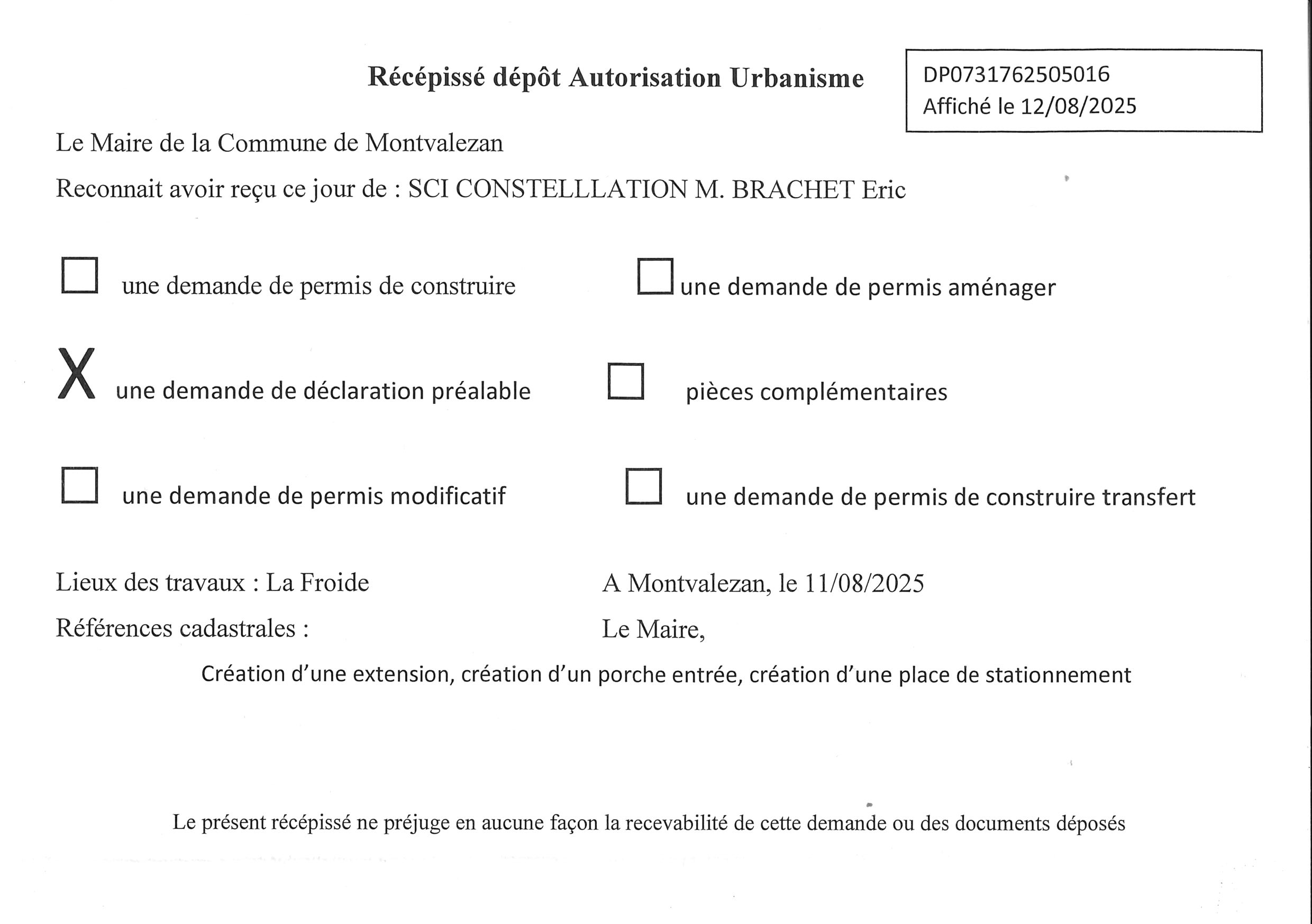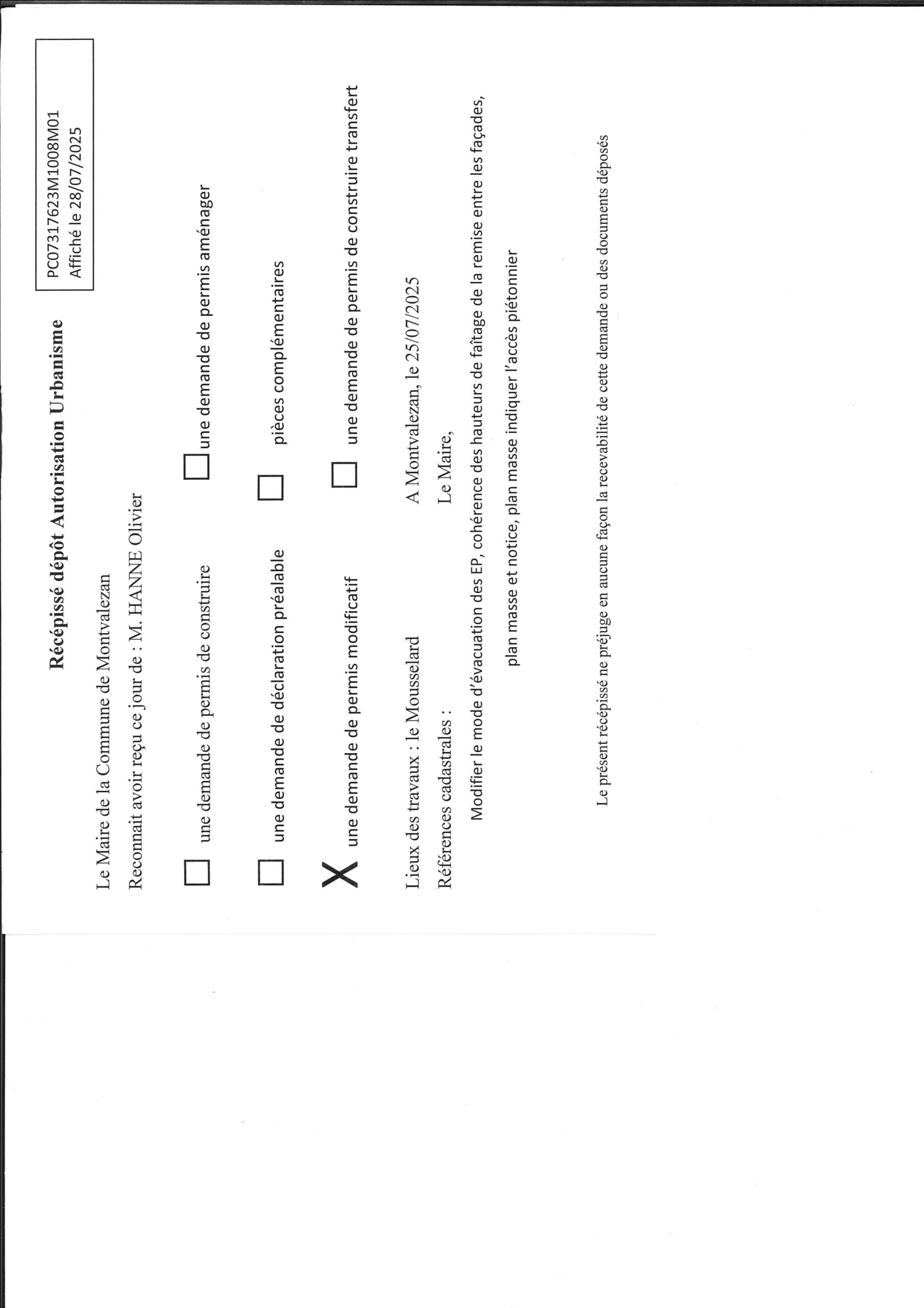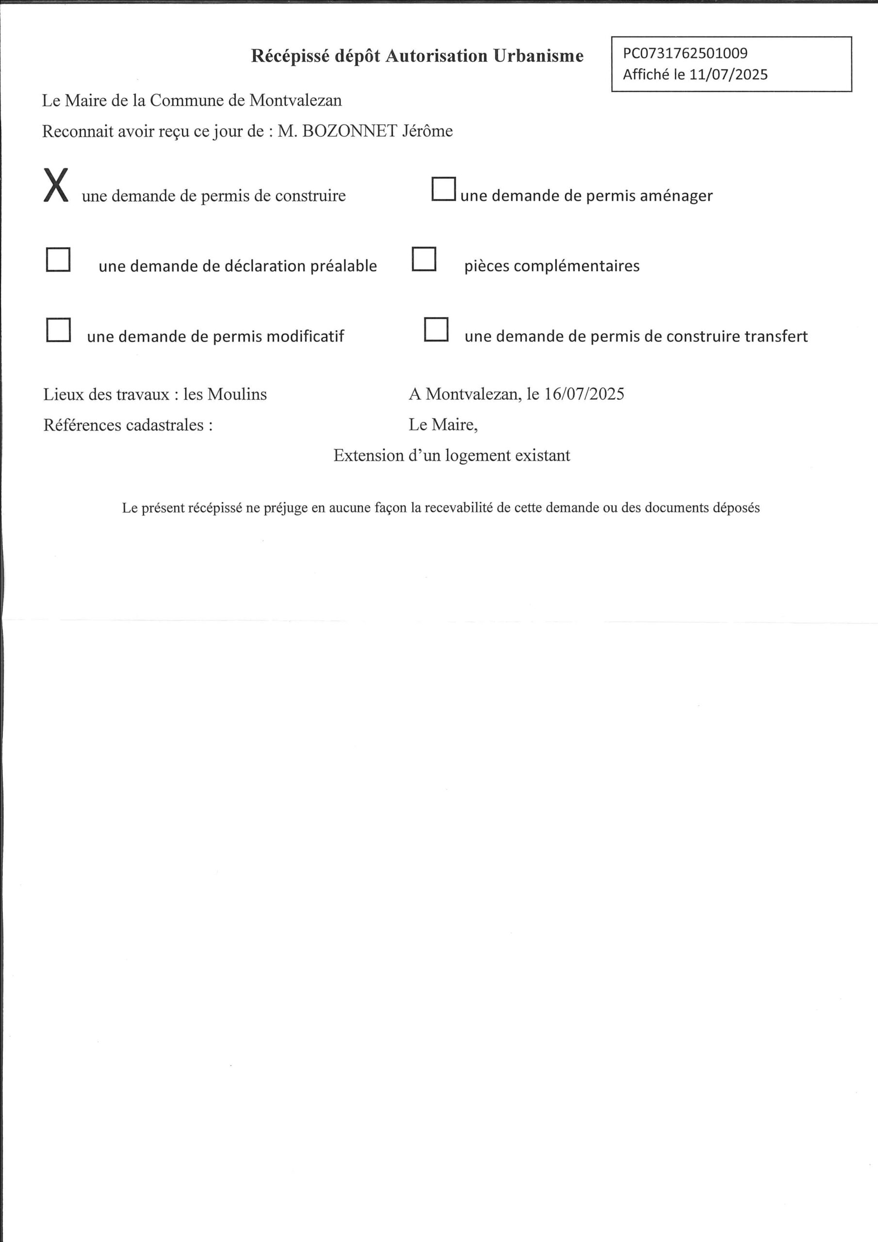 • les récépissés de dépôt des autorisations d’urbanisme (ADS) ;