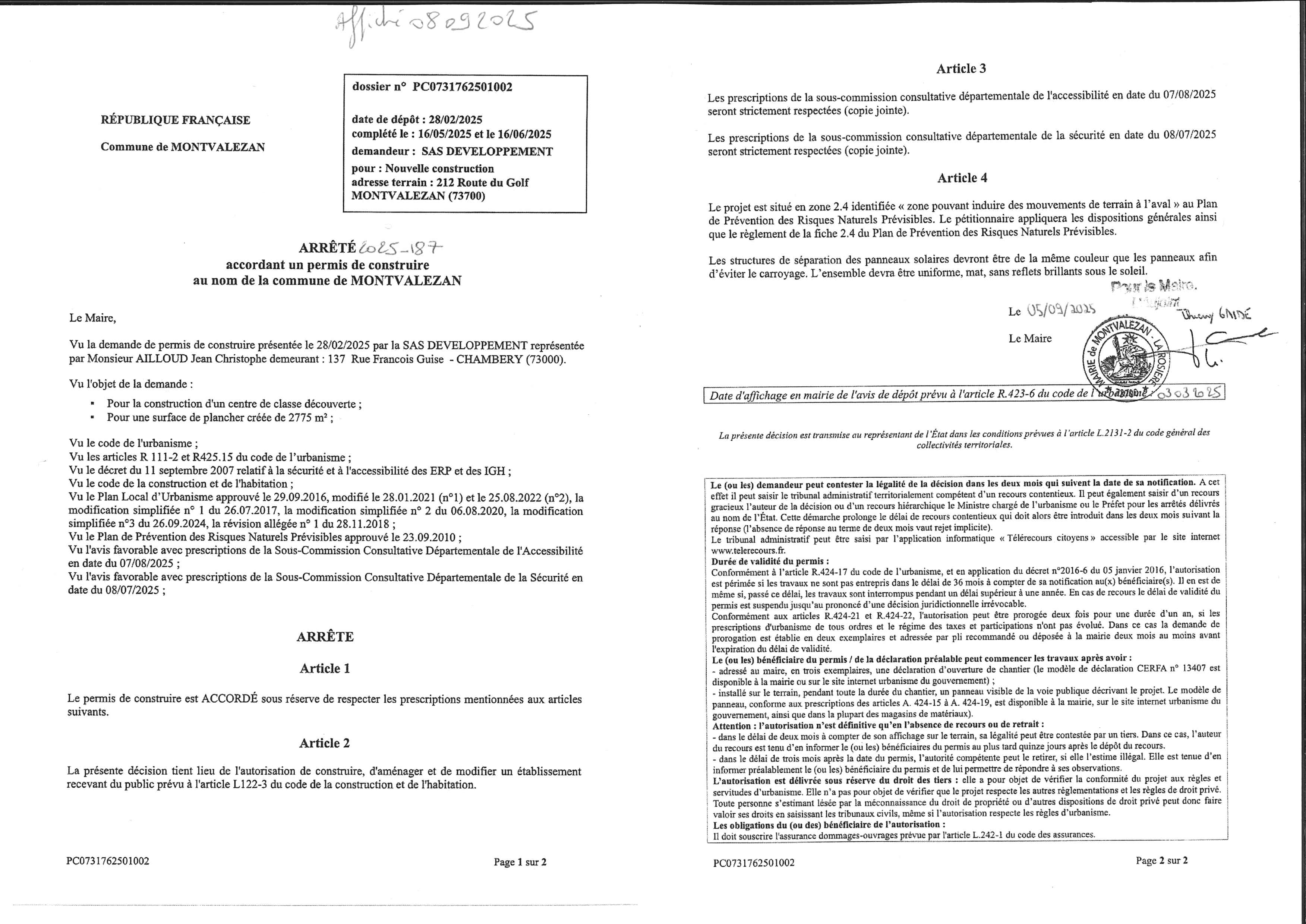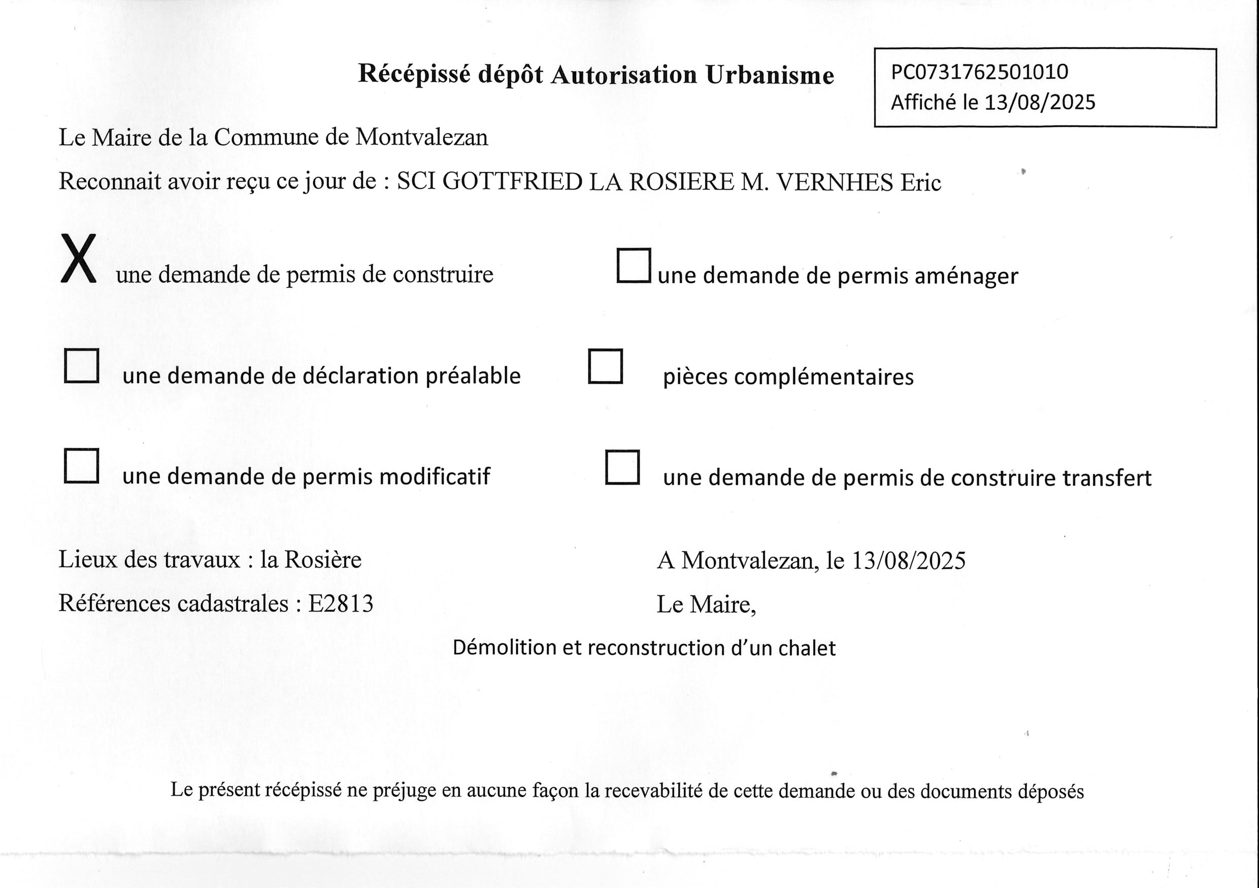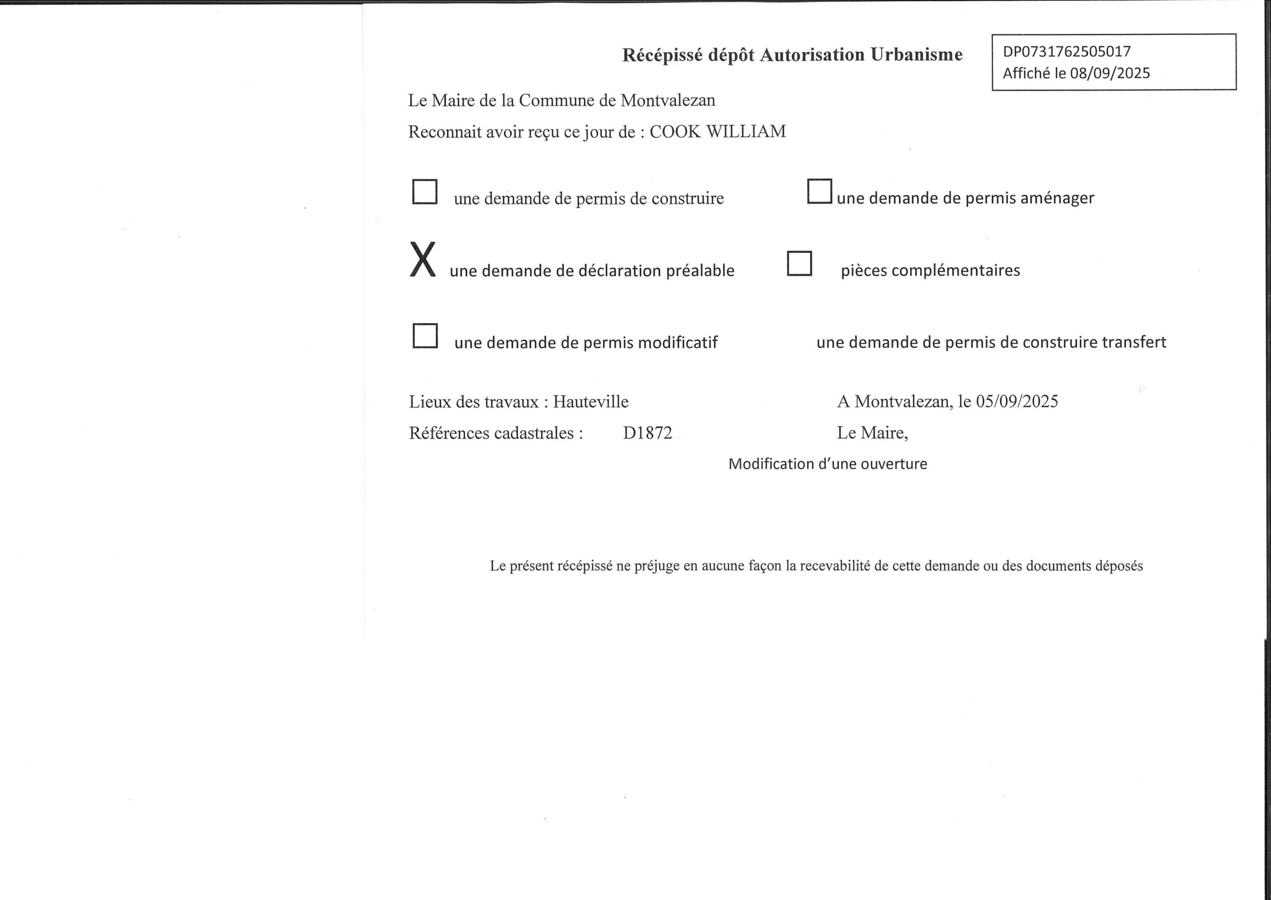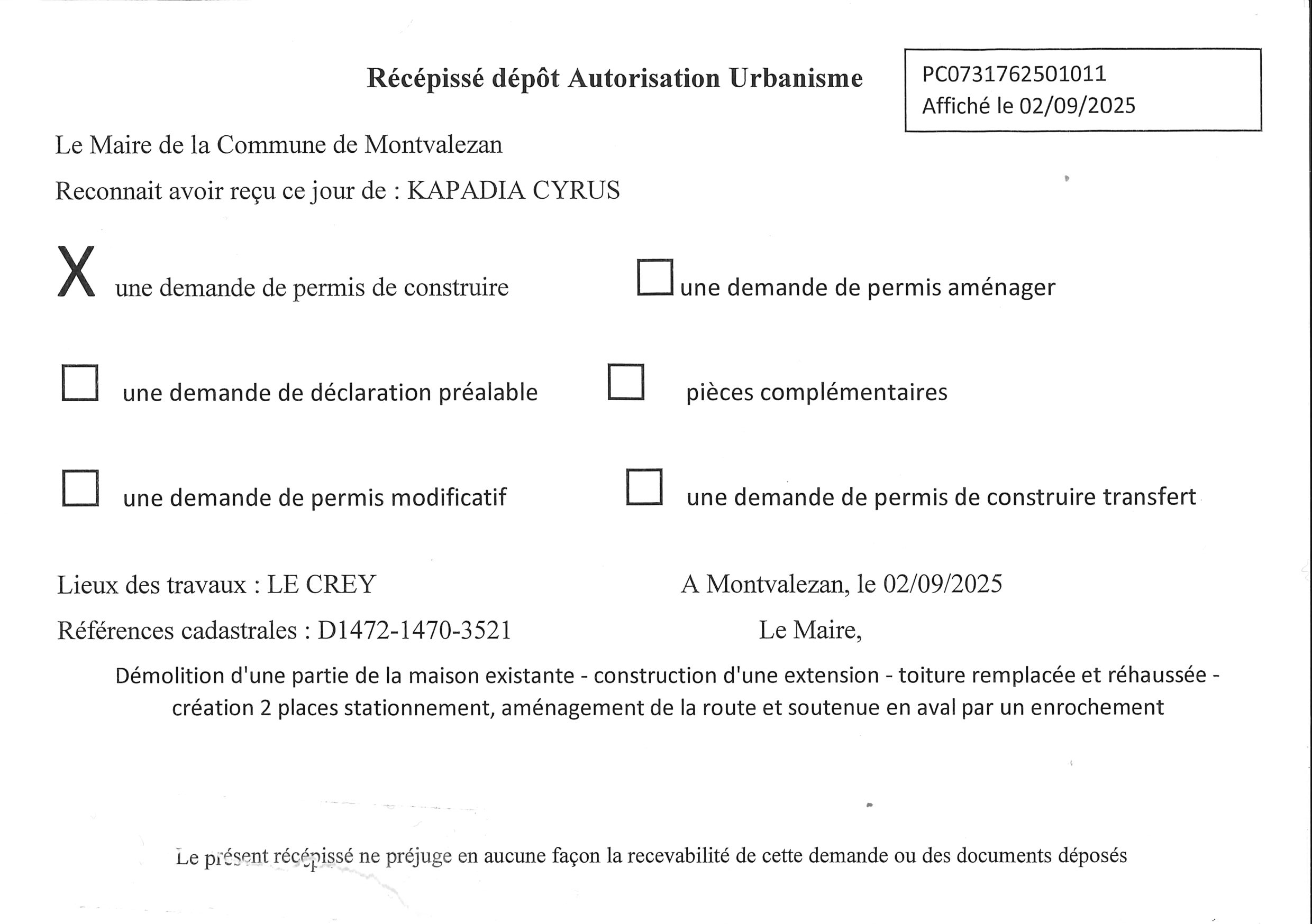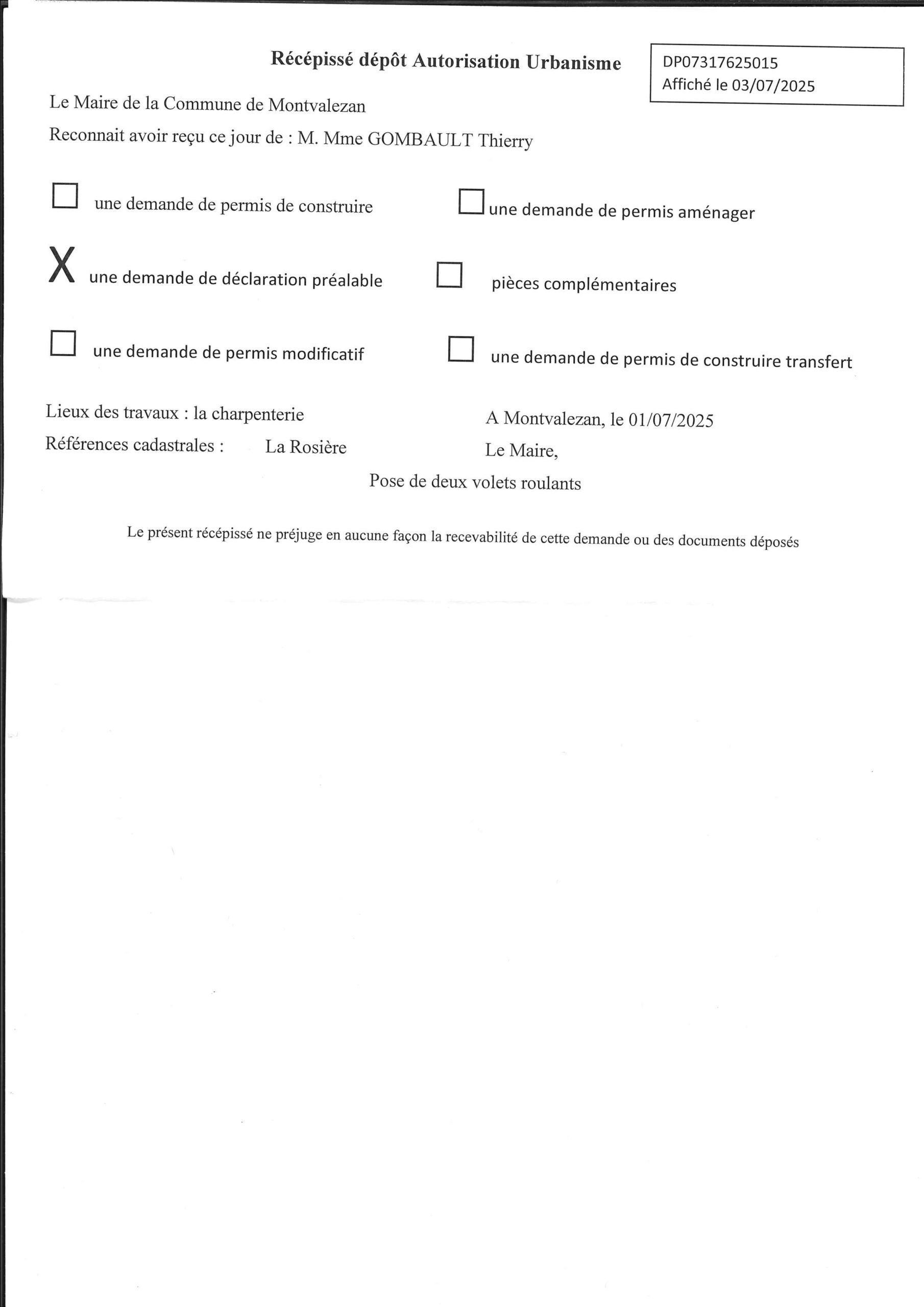 • les récépissés de dépôt des autorisations d’urbanisme (ADS) ;