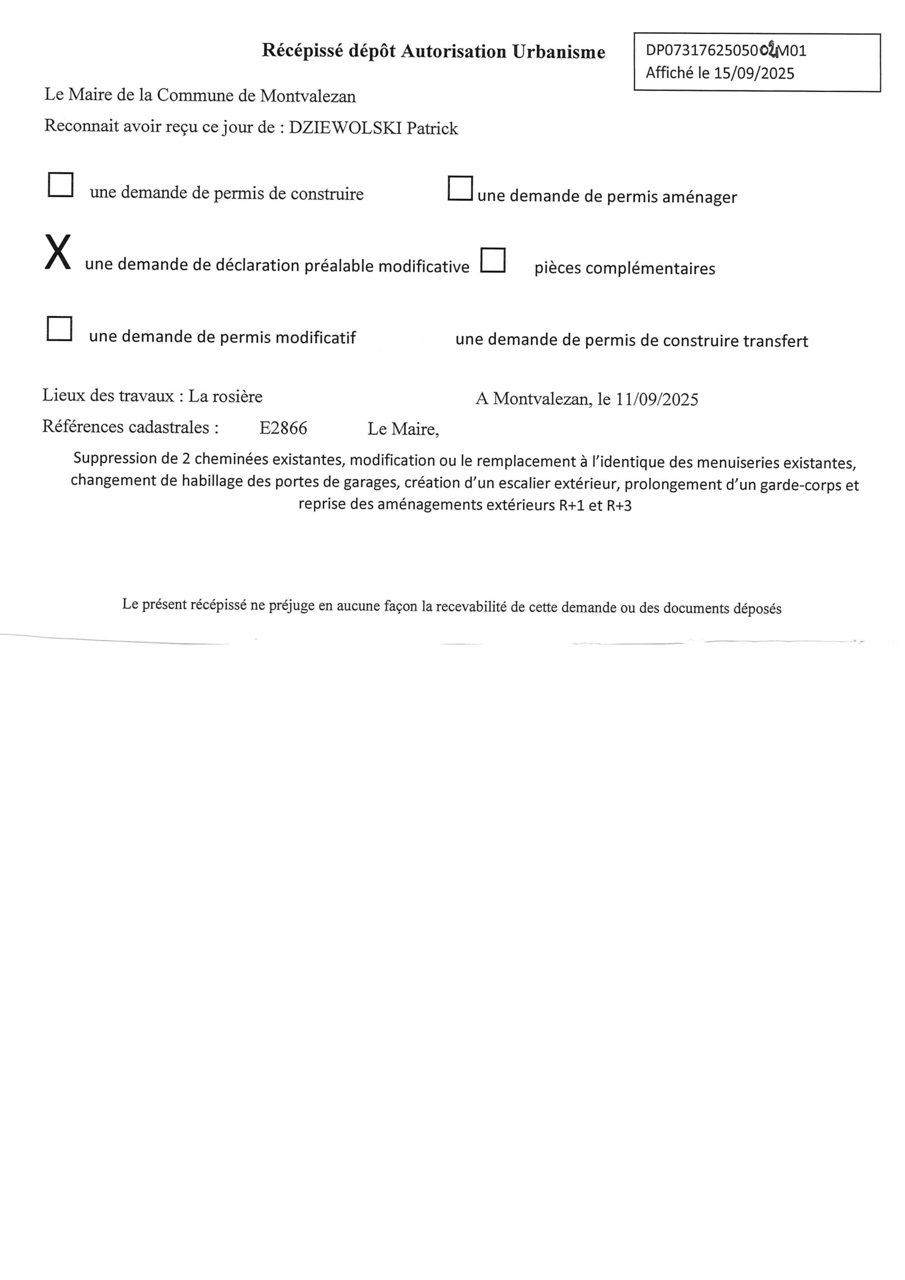 • 26/09/2024 : Modification simplifiée n°3