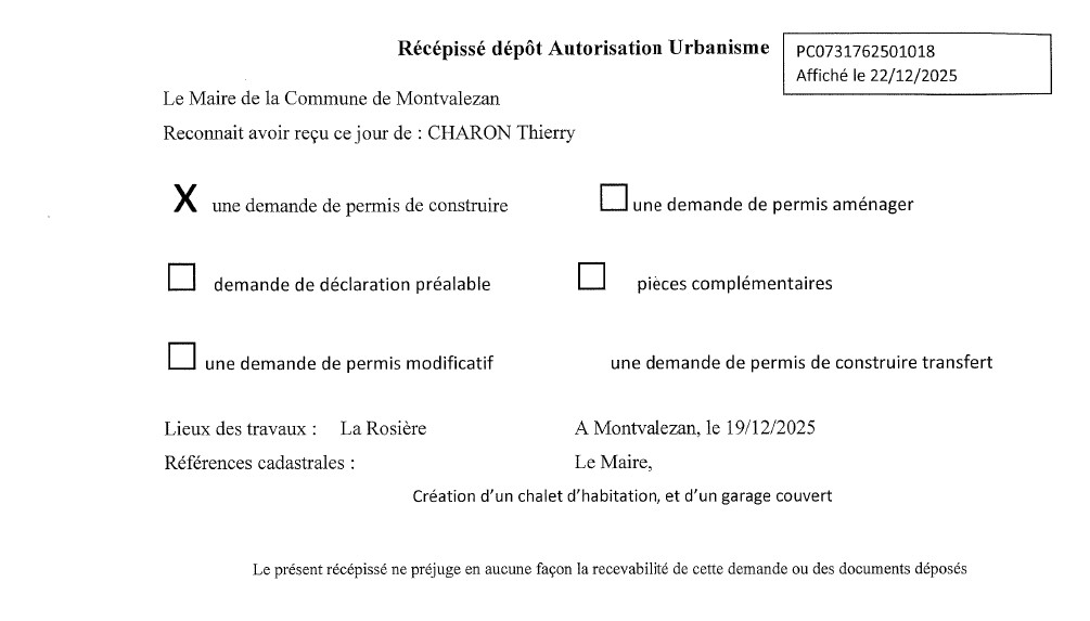 récépissé dépôt PC0731762501018 CHARON Thierry