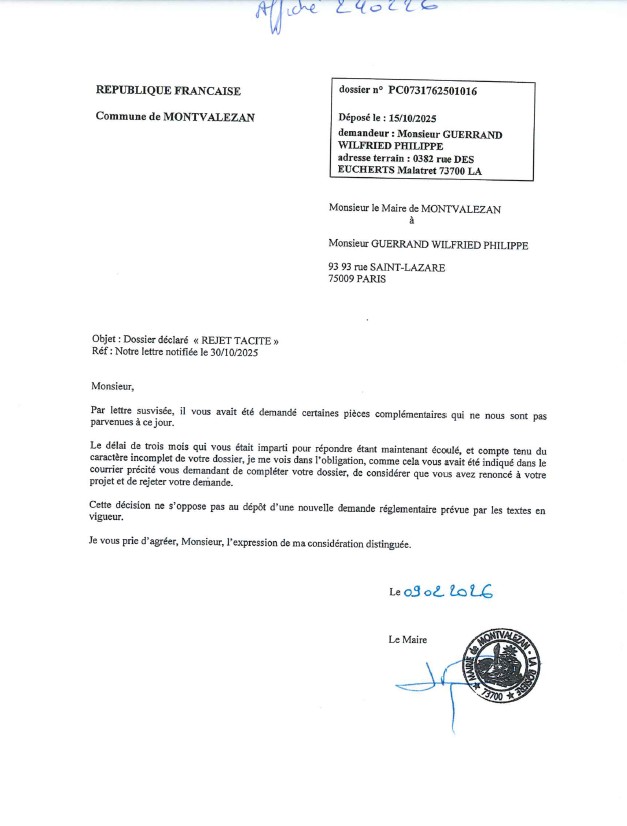 Le registre des autorisations d’urbanisme est mis à jour régulièrement.